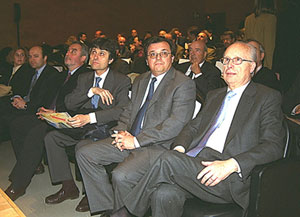 ![]() Tras el acto de entrega distintas personalidades del mundo sanitario, posan junto con los siete ganadores de la convocatoria 2001. |