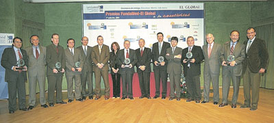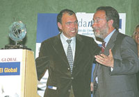 ![]() J. Sánchez Fierro recibió el premio a la Figura Sanitaria del año, de manos de E. Ríus, consejero catalán de Sanidad. |