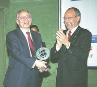 ![]() J. Acebillo, presidente de Novartis recogió el galardón a la Mejor Compañía del año 2001. |